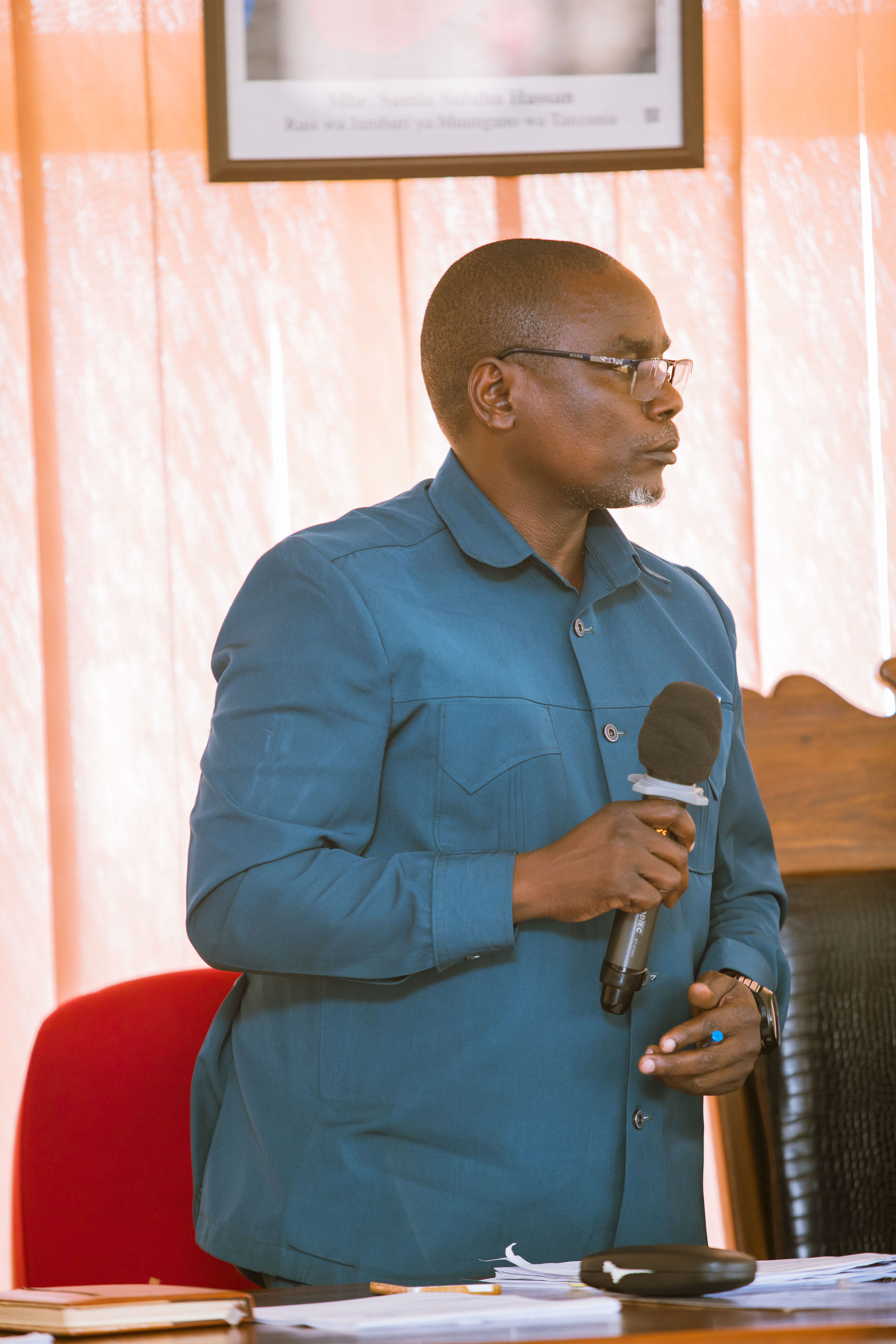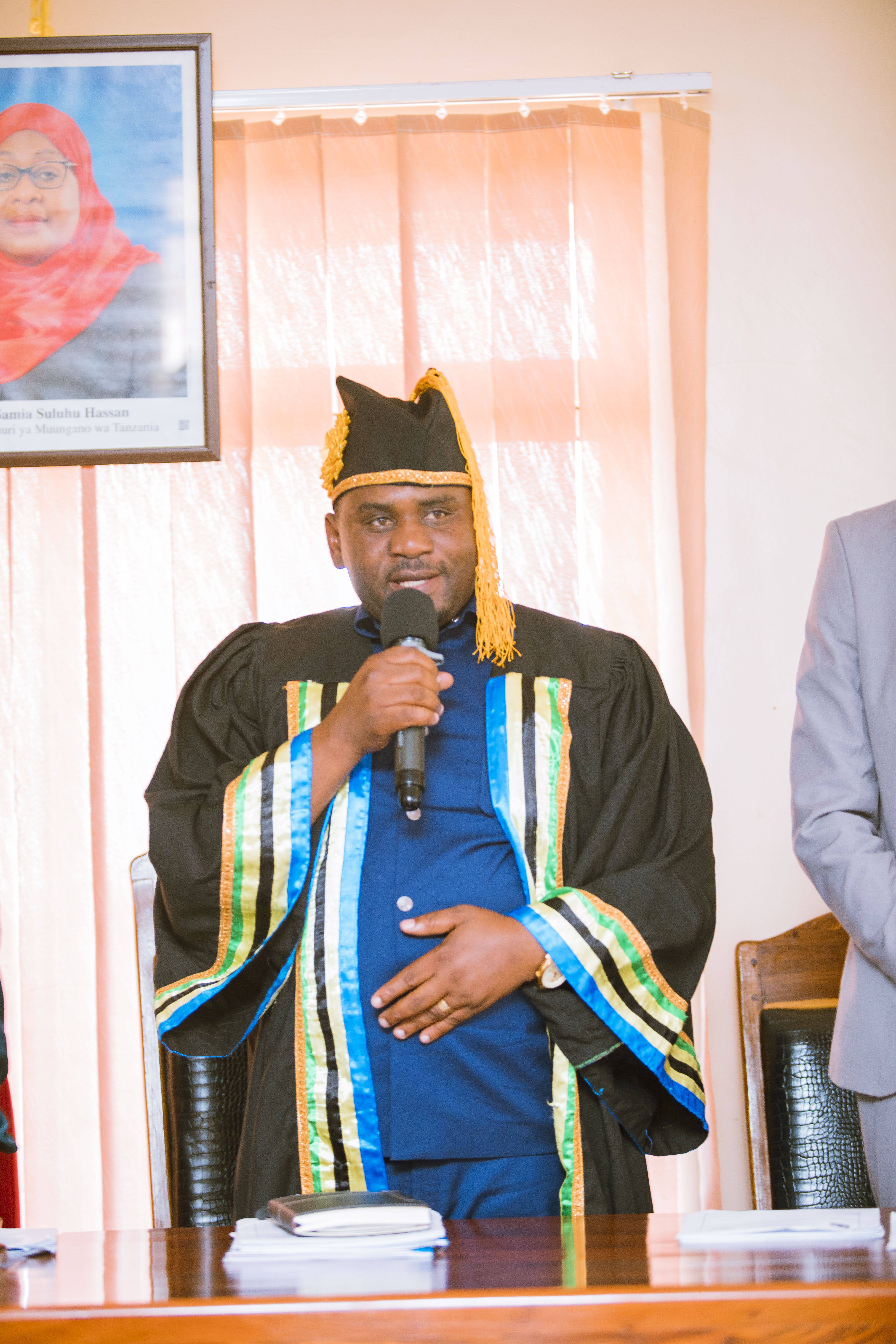 Mwenyekiti wa Halmashauri Mhe Jumanne Sengo Misungwi ambaye pia ni Diwani wa Kata ya Ludete akizungumza na Waheshimiwa Madiwani katika Kikao cha Kwanza cha Baraza la Madiwani.Mhe Misungwi amechaguliwa kuwa Mwenyekiti wa Halmashauri kwa kupata Kura 50 kati ya 51 za Wajumnbe wote waliompigia kura ya ndio